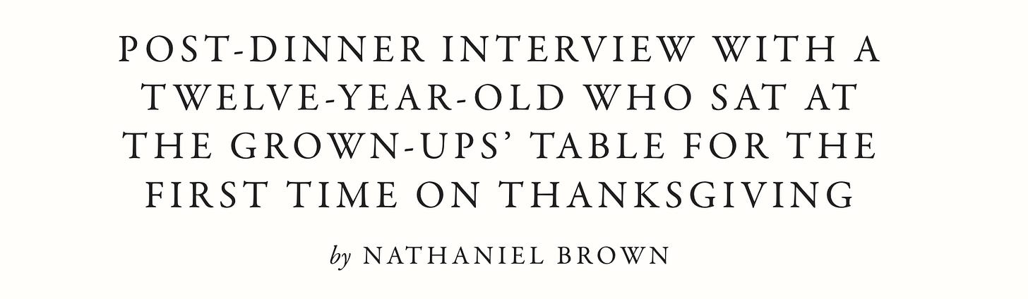 Post-Dinner Interview with a Twelve-Year-Old Who Sat at the Grown-Ups' Table for the First Time on Thanksgiving