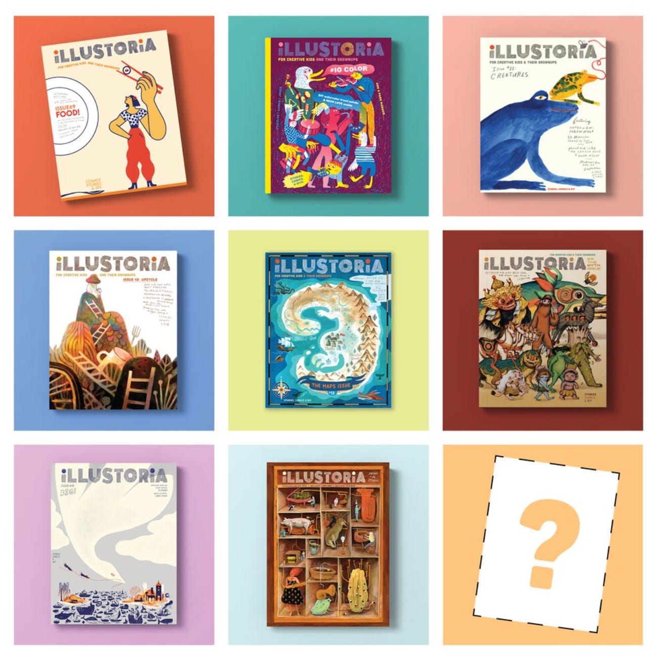 Illustoria is an art and storytelling print magazine for all ages, suitable for readers as young as six years. Packed with stories, comics, DIY projects, and interviews orbiting a central theme—this magazine aims to incite curiosity and ignite creative response.